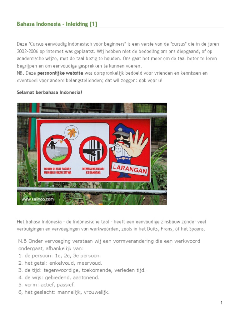 Syllabus Indonesian Language Course For Native Speakers Of Dutch